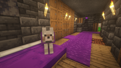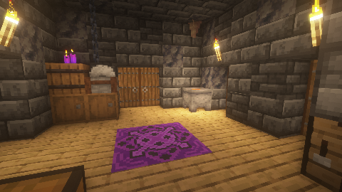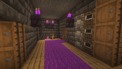 Everytime I start playing, my only objective is to just build the most evil deepslate house possible. (purple carpets and candles)